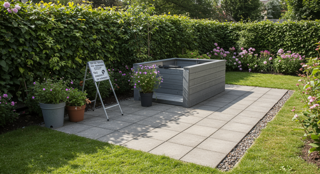 1. Choisir l’emplacement : Sélectionnez un endroit plat et dégagé pour votre abri de jardin. Assurez-vous qu’il soit éloigné des arbres et des racines qui pourraient endommager la dalle.